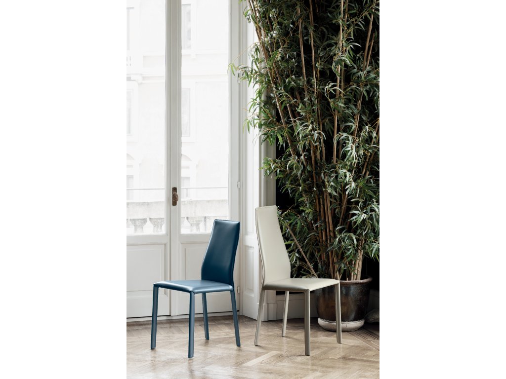 Klasická jídelní židle Dalila se vyznačuje elegantním designem a nadčasovým stylem. Je dostupná ve dvou variantách – s nízkým nebo vysokým opěrákem, což umožňuje výběr podle vašich preferencí a potřeb. Židle se vyrábí výhradně z tvrdé kůže, která je k dispozici v několika barevných variantách, a je celočalouněná, včetně podnože, což jí dodává luxusní a jednotný vzhled. Díky kvalitnímu provedení je Dalila ideální volbou pro moderní domácnosti i stylové restaurace.