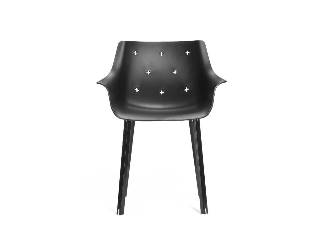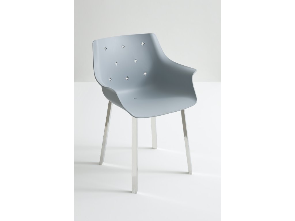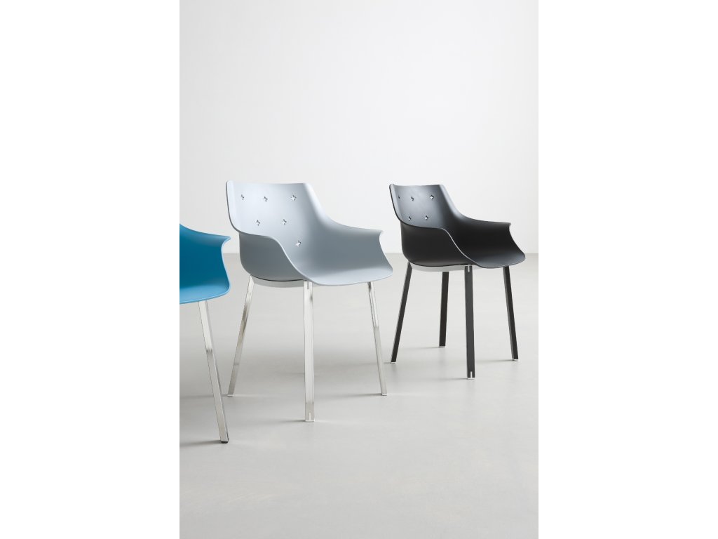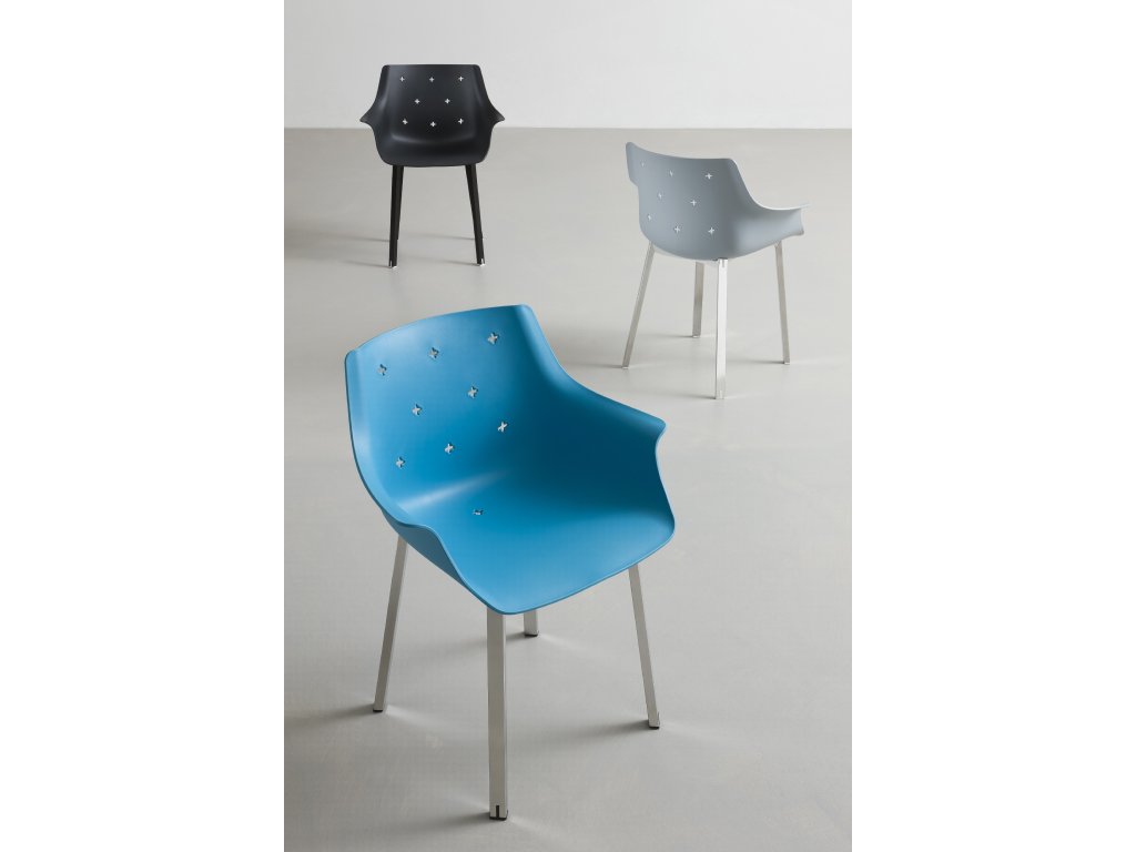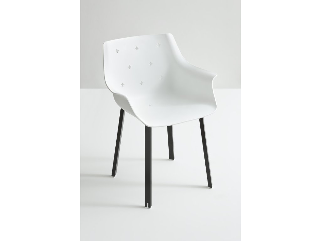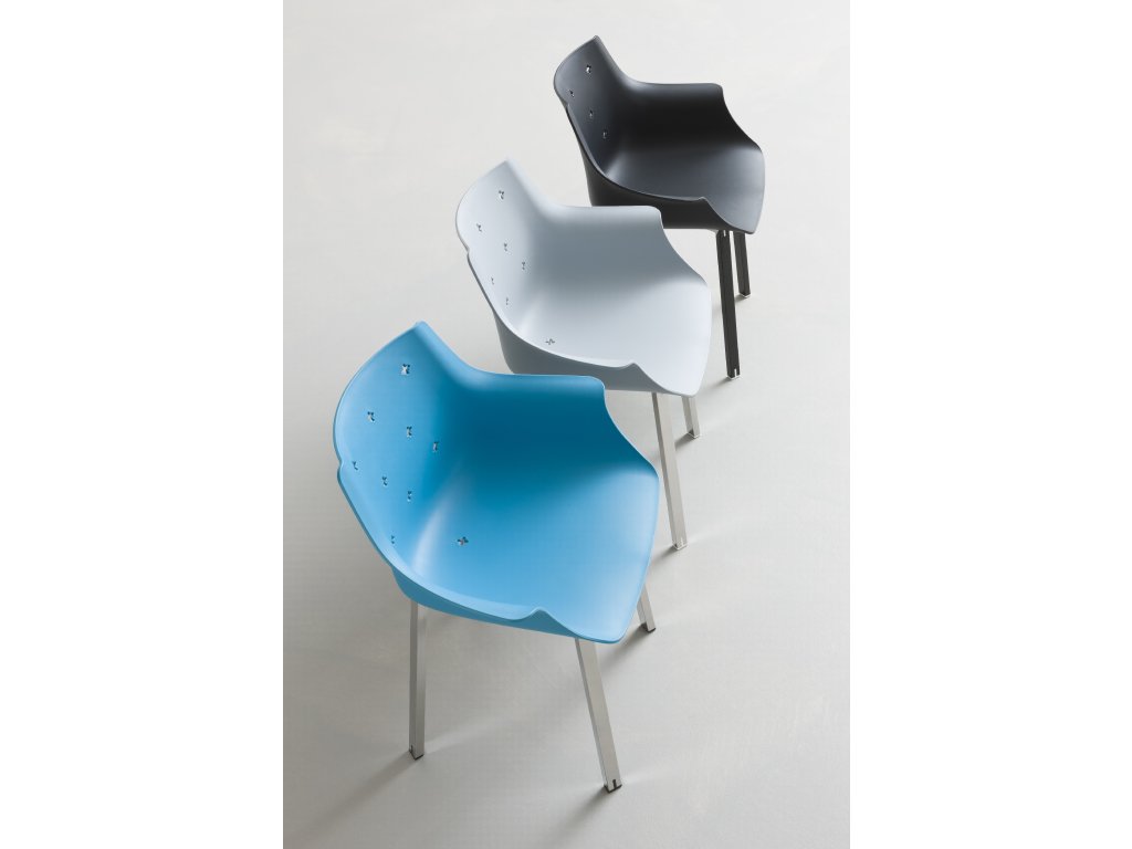Židle More zaujme svým tvarem připomínajícím křeslo, díky čemuž nabízí nejen originální vzhled, ale i vyšší komfort sezení. Sedák je vyroben z kvalitního technopolymeru a stojí na kovové podnoži v chromu, černé nebo bílé barvě. V lakovaném provedení (bílá, černá) je židle vhodná i pro venkovní použití.